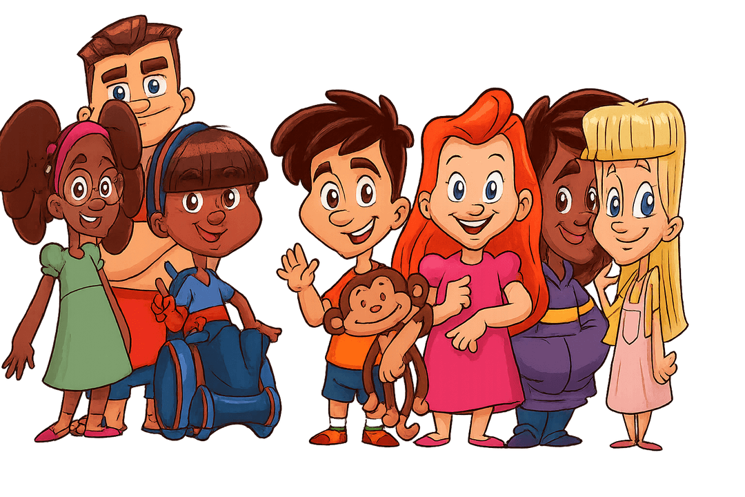 Criamos histórias, produtos e experiências que ajudam as crianças a se sentirem representadas, respeitadas e incluídas — enquanto ensinam valores como respeito, amizade, paciência e colaboração.
